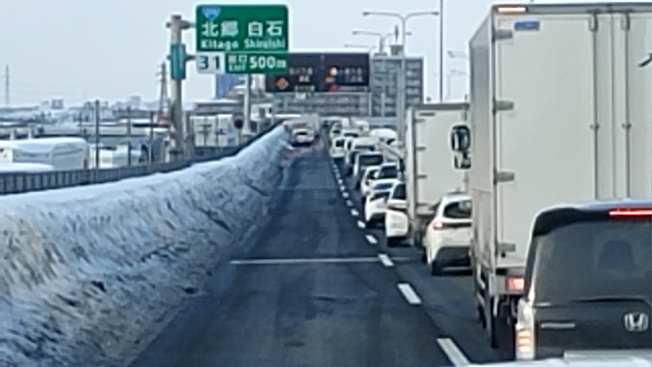 札幌南過ぎてすぐに渋滞・・・事故か?